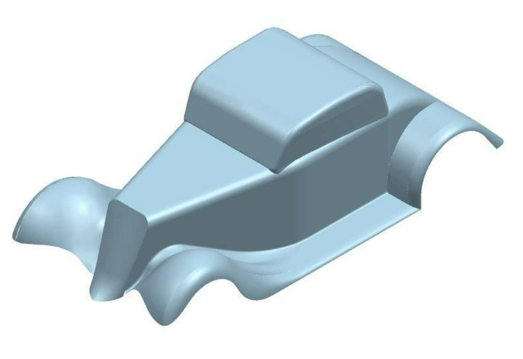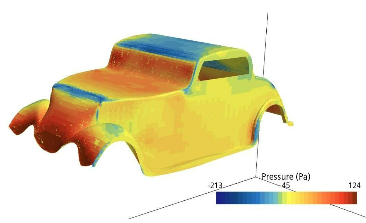 The surface of the car was optimized to reduce the drag load on the assembly. Because the car was designed parametrically, different surfaces could quickly be iterated on and tested to find the minimum drag.